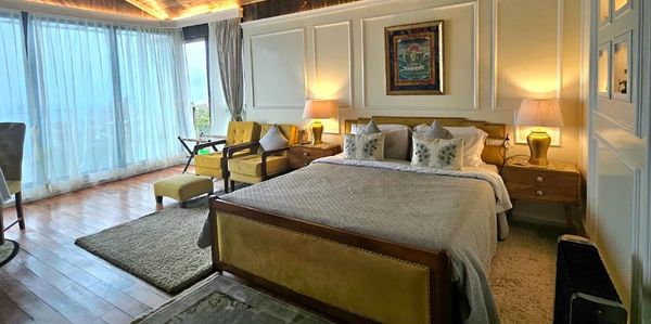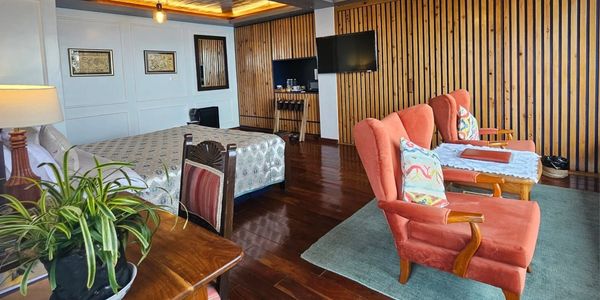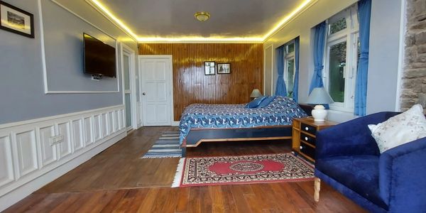 Large & luxurious family room, comfortable with an extra bed for three guests. Room comes with a large bay window facing the Kanchenjunga range.