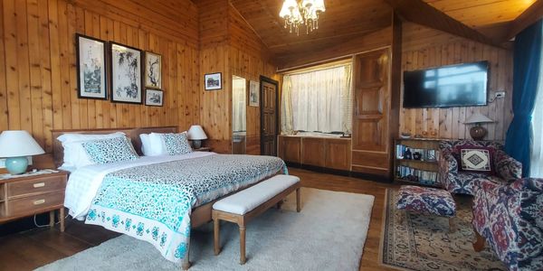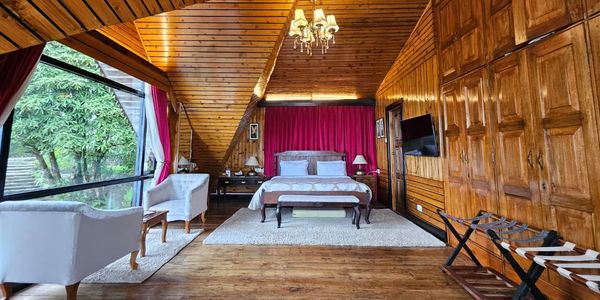 280 sq ft cozy timber decor bedroom with attached bathroom and unobstructed views of the Kanchenjunga mountain range.